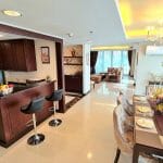 This is a very special property on the market for sale (currently with a tenant until at least February 2025) in the Na Klua area of North Pattaya. The three story detached property has 5 bedrooms (3 with a sea view), 7 bathrooms, large living and dining area, 2 kitchens, maid’s quarters, swimming pool, garden, sea views and private access to Wongamat beach. The interior living area measures 426 sqm and the property sits on 91 Sq. Wah of land. This private and peaceful location will make a lovely family home, weekend retreat or investment opportunity.