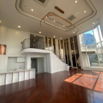 This is a luxury duplex condo on the market for sale at Windhshell Narathiwas. The spacious property measures 453.28 sqm, has been specially decorated and furnished by Chanintr and has nice views of the surrounding area. There are 2 upstairs bedrooms, a guest room downstairs and an spareroom. Windshell has a swimming pool, gym, lounge, parking and security service.